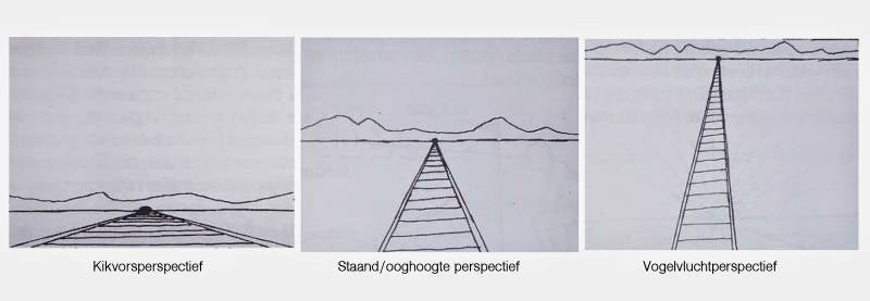 Ten tweede heb je het kikkerperspectief: een foto van onder nemen. En het vogelperspectief: een foto van boven nemen.